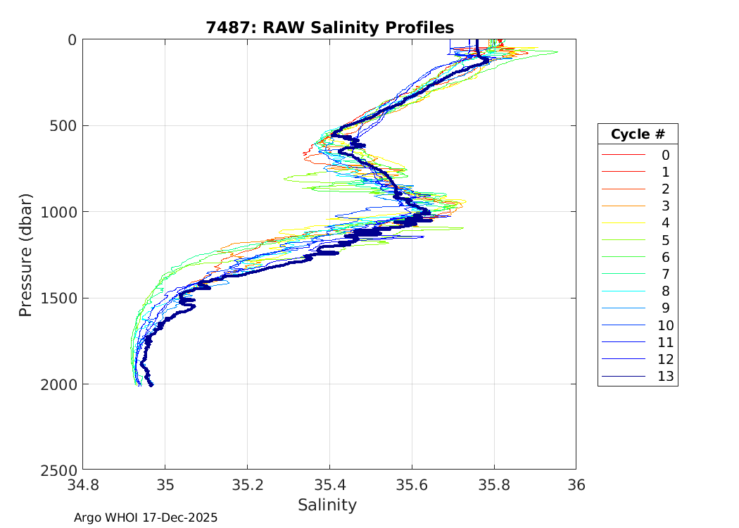 | Etc Telemetry: 7510 GDAC plots: 1902477 SOLO2IR_TS9 SBE41CP: #10926 Druck: #10917997 Deployed: 2023-07-03 Roger Revelle, RR-2307-2023 | ![]() |