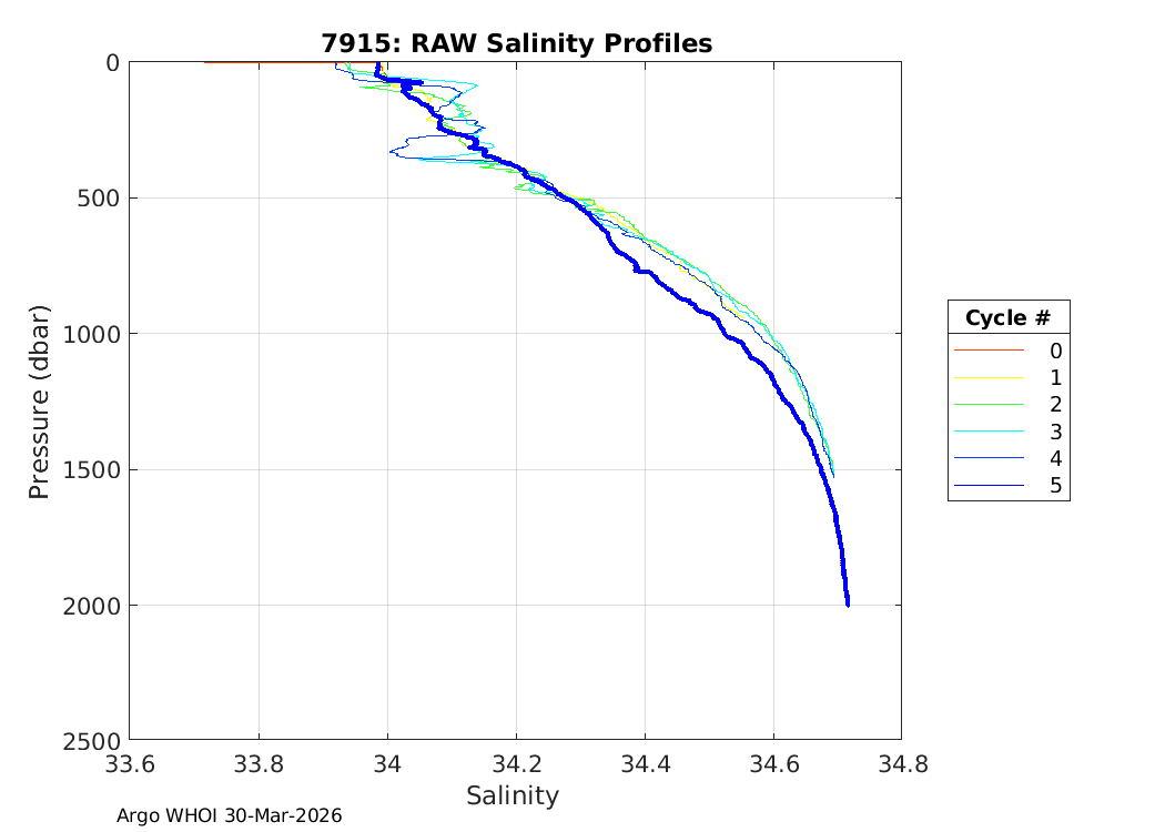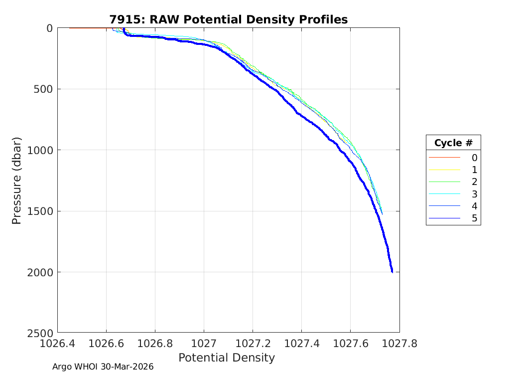 | Etc Telemetry: 7935 GDAC plots: 7902375 SOLO2IR_TS9 SBE41CP: #20663 Druck: #12426869 Deployed: 9999-99-99 RV Revelle, A16S-RR2602-2026 | ![]() |