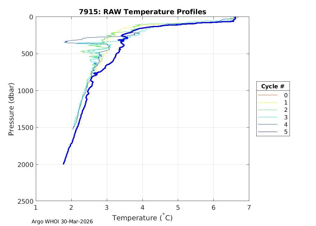 | Etc Telemetry: 7915 GDAC plots: 5907245 SOLO2IR_TS9 SBE41CP: #19708 Druck: #12405479 Deployed: 2026-03-14 RV Revelle, A16S-RR2602-2026 | ![]() |