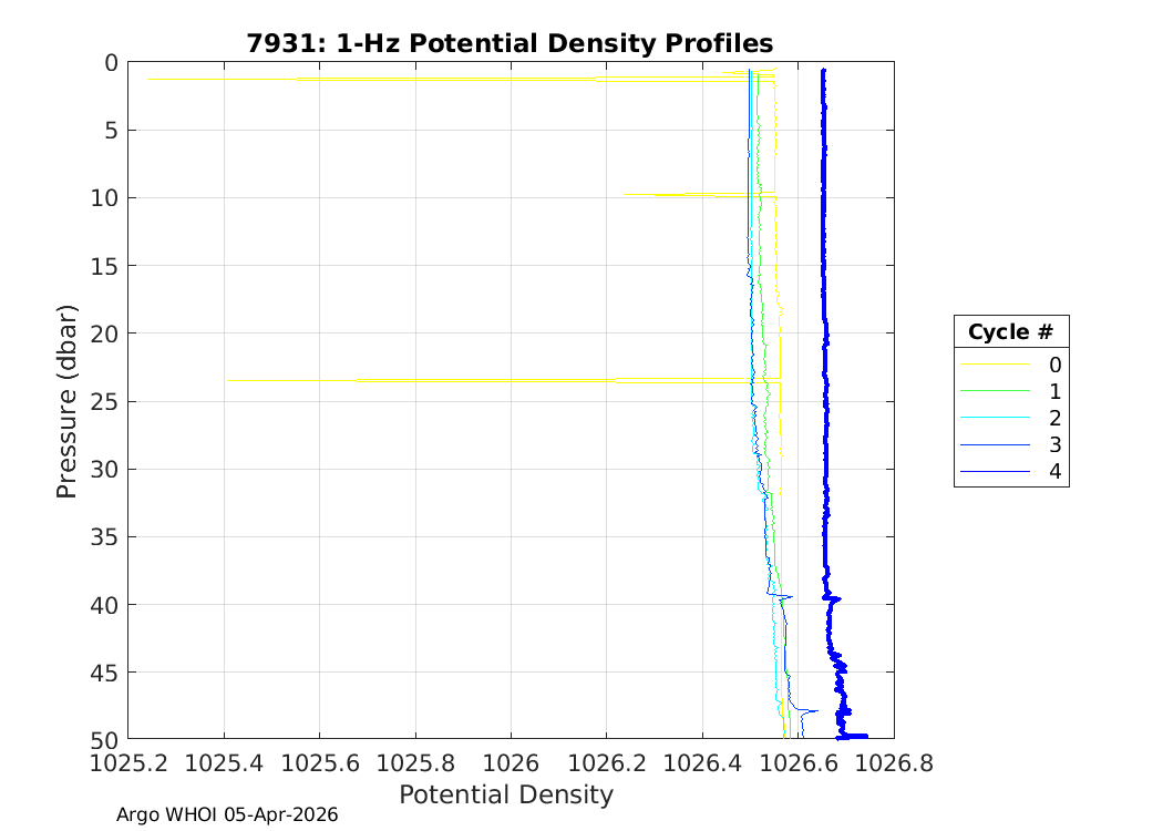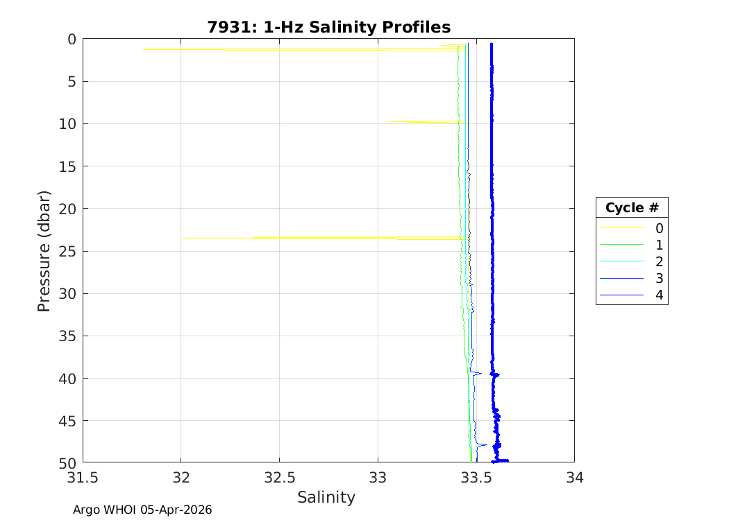 | Etc Telemetry: 7935 GDAC plots: 7902375 SOLO2IR_TS9 SBE41CP: #20663 Druck: #12426869 Deployed: 9999-99-99 RV Revelle, A16S-RR2602-2026 | ![]() |