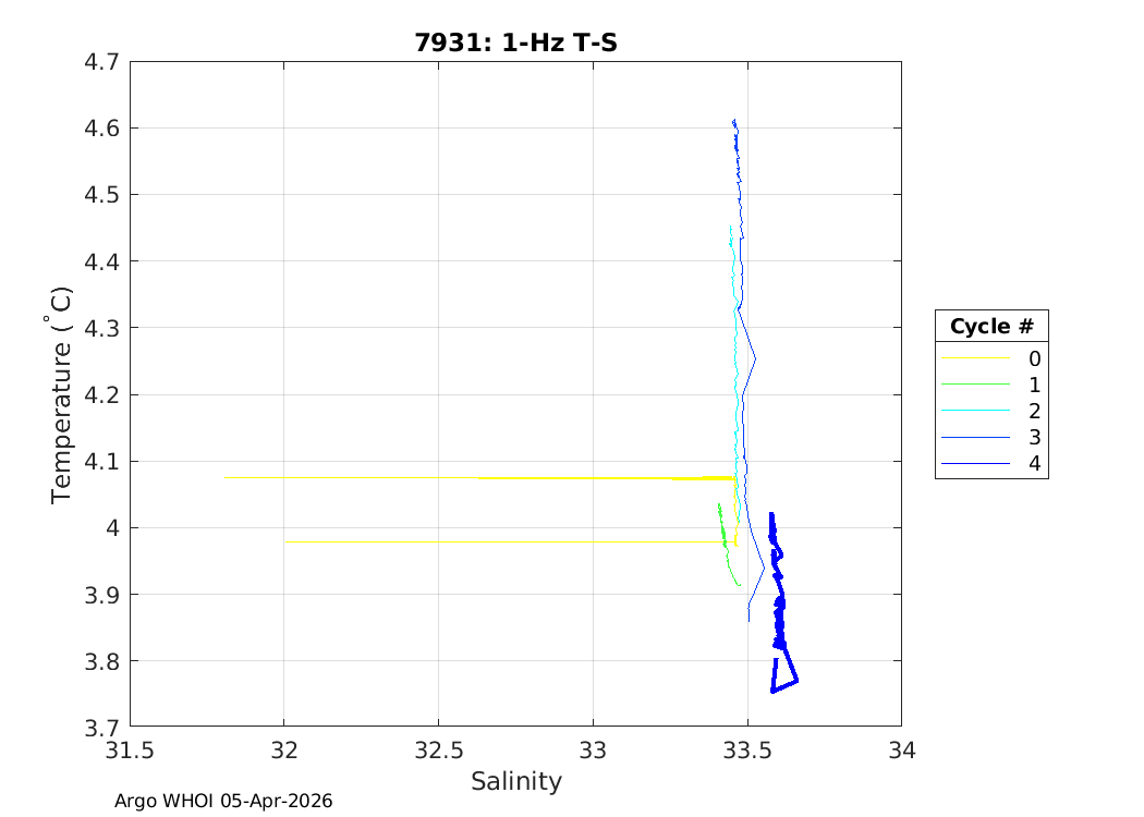 | Etc Telemetry: 7895 GDAC plots: 4903826 SOLO2IR_TS9 SBE41CP: #19754 Druck: #12393206 Deployed: 2024-10-06 Thomas G Thompson, TN-436-2024 | ![]() |
