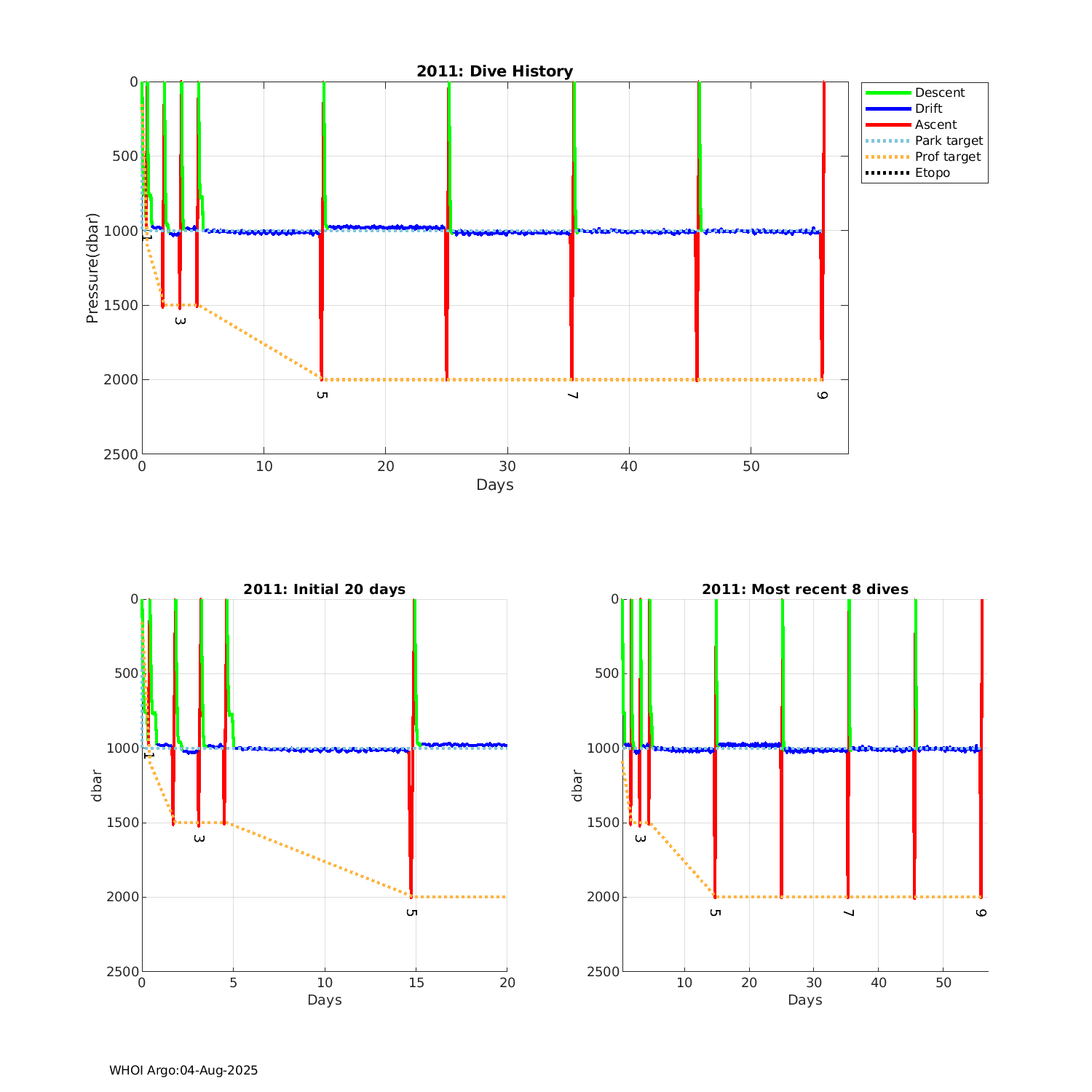 | Etc Telemetry: 2011 GDAC plots: 5907191 SOLO2IR_TS9 SBE41CP: #20685 Druck: #12677401 Deployed: 2025-06-09 KENNEDY, SST25 | ![]() |
