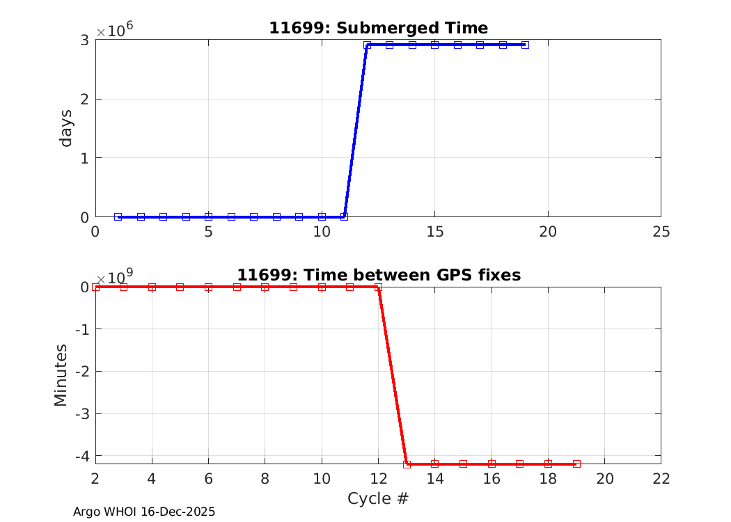 | Etc Telemetry: 2031 GDAC plots: 1902790 SOLO2IR_TS9 SBE41CP: #20853 Druck: #12528827 Deployed: 2025-05-13 ARMSTRONG, AR89 | ![]() |