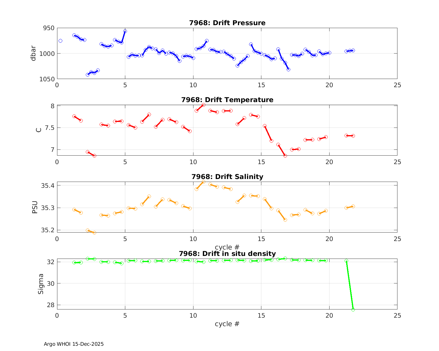 | Etc Telemetry: 2031 GDAC plots: 1902790 SOLO2IR_TS9 SBE41CP: #20853 Druck: #12528827 Deployed: 2025-05-13 ARMSTRONG, AR89 | ![]() |