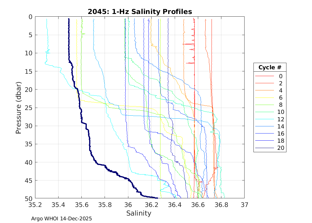 | Etc Telemetry: 2052 GDAC plots: 2904054 SOLO2IR_TS9 SBE41CP: #21076 Druck: #12742457 Deployed: 2025-12-13 MV Bulk Xaymaca, MV Bulk Xaymaca-2025 | ![]() |