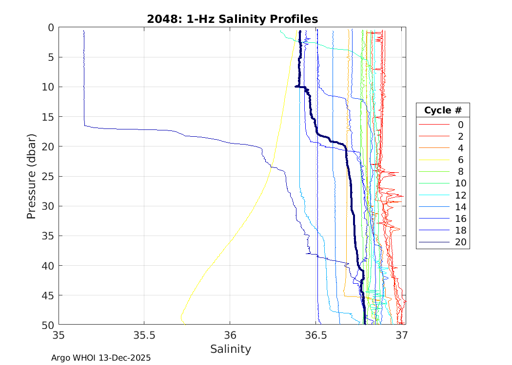 | Etc Telemetry: 2049 GDAC plots: 4903895 SOLO2IR_TS9 SBE41CP: #19678 Druck: #12405501 Deployed: 9999-99-99 ATLANTIC EXPLORER, BATS2025 - BATS Val | ![]() |