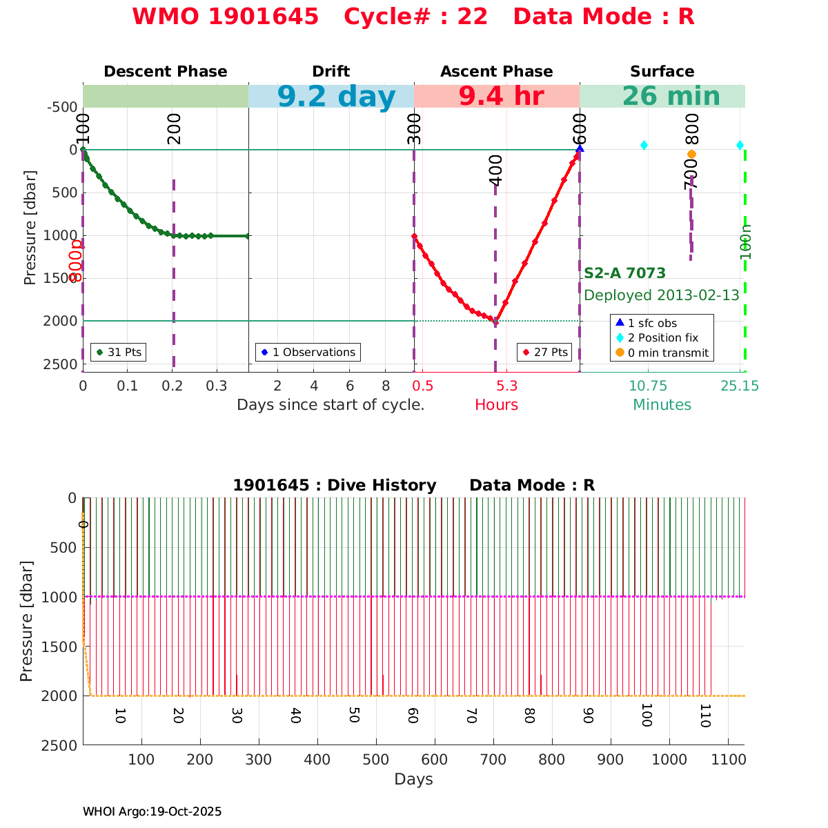 Argo WMO 1901645 : Plots based on NetCDF data files at the GDAC