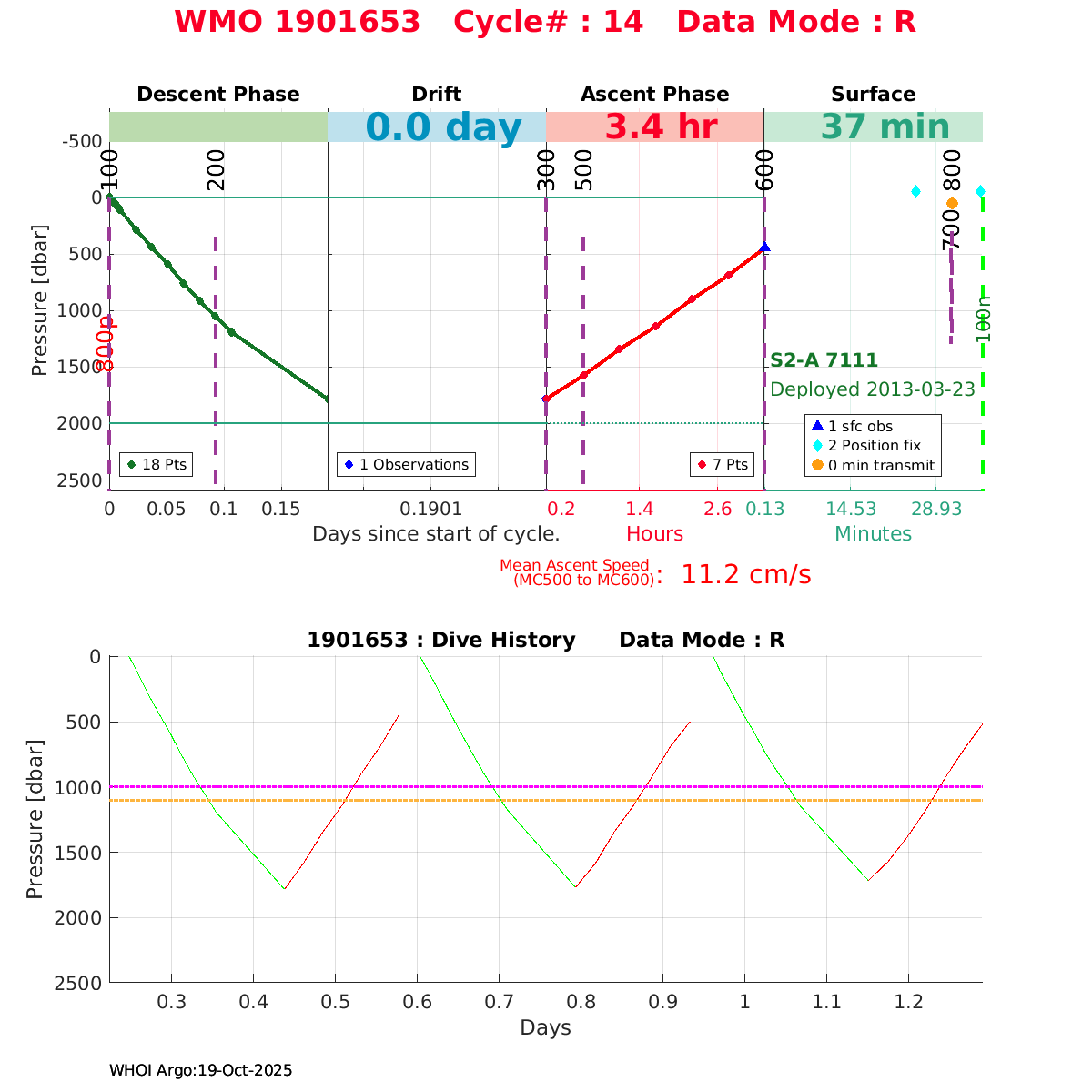 Argo WMO 1901653 : Plots based on NetCDF data files at the GDAC