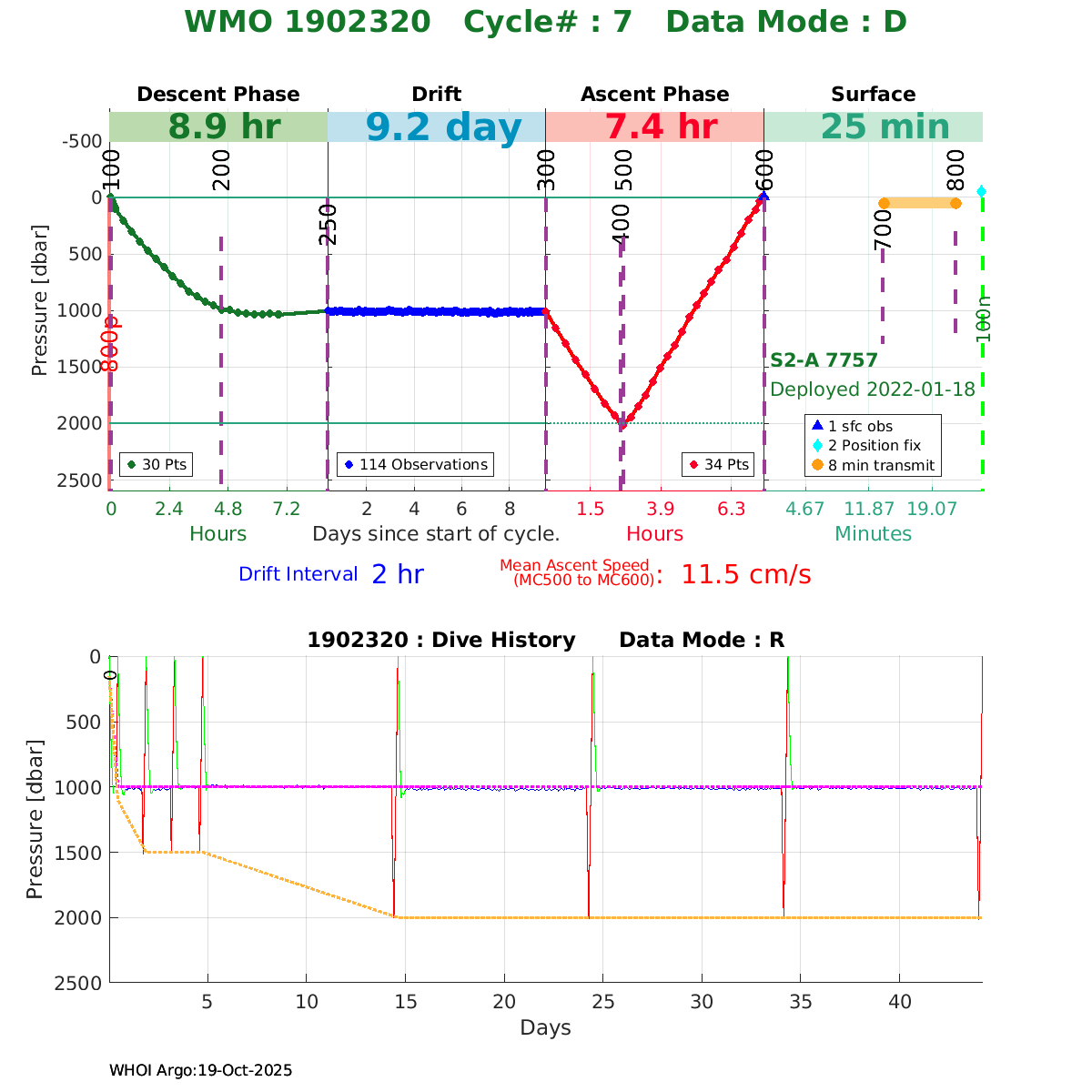 Argo WMO 1902320 : Plots based on NetCDF data files at the GDAC