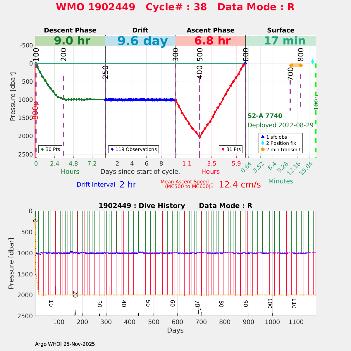 Argo WMO 1902449 : Plots based on NetCDF data files at the GDAC