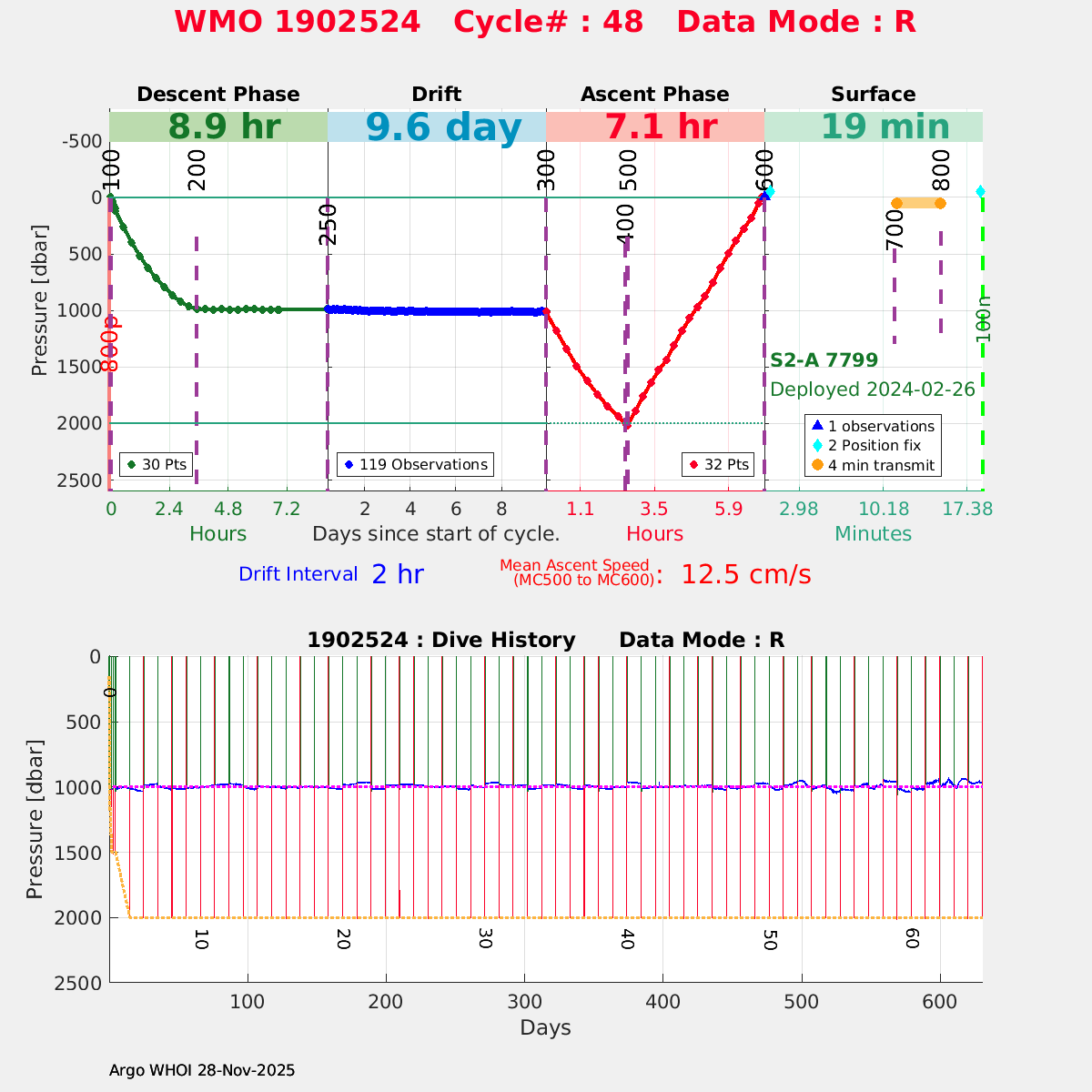 Argo WMO 1902524 : Plots based on NetCDF data files at the GDAC