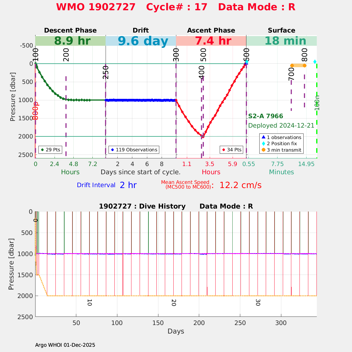 Argo WMO 1902727 : Plots based on NetCDF data files at the GDAC