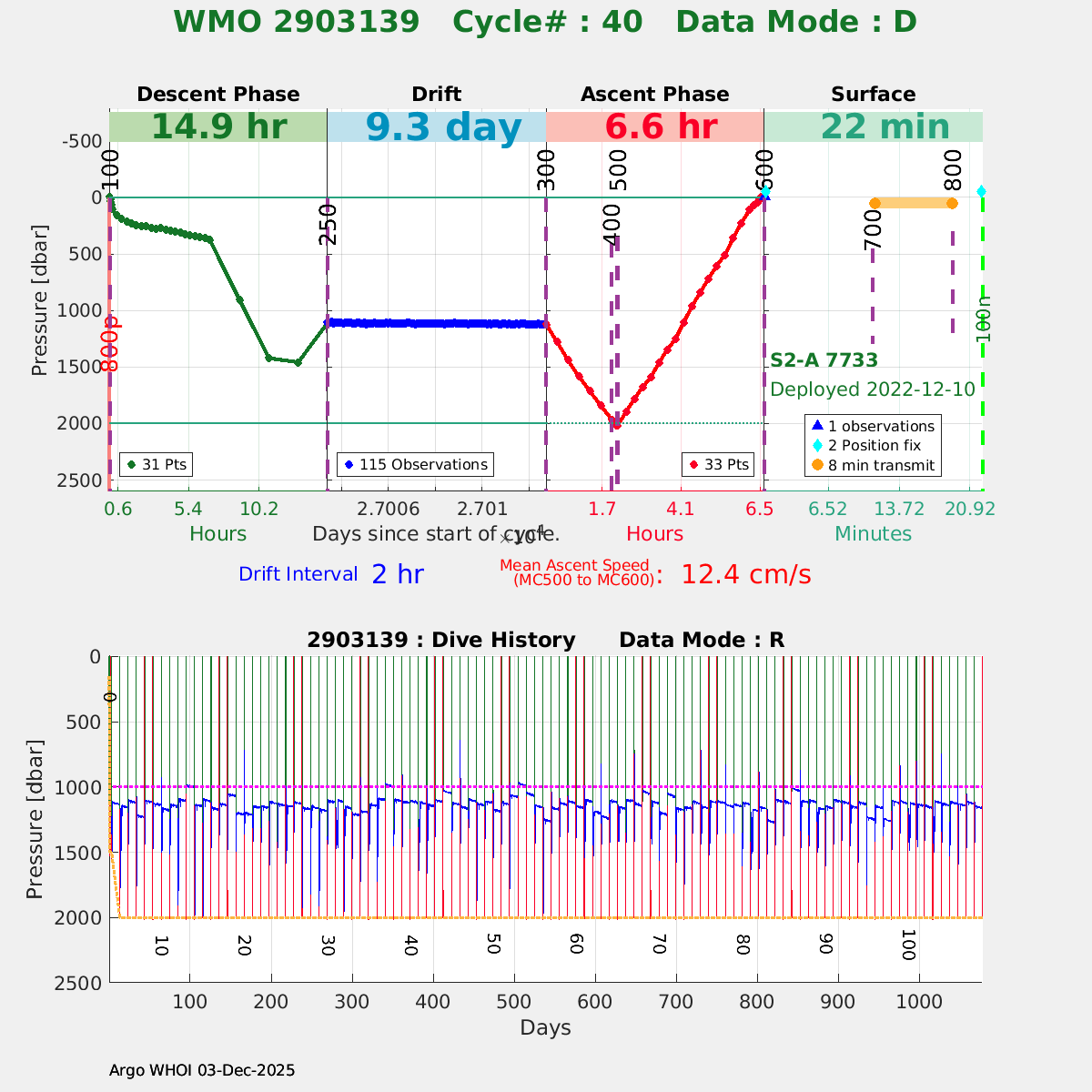 Argo WMO 2903139 : Plots based on NetCDF data files at the GDAC
