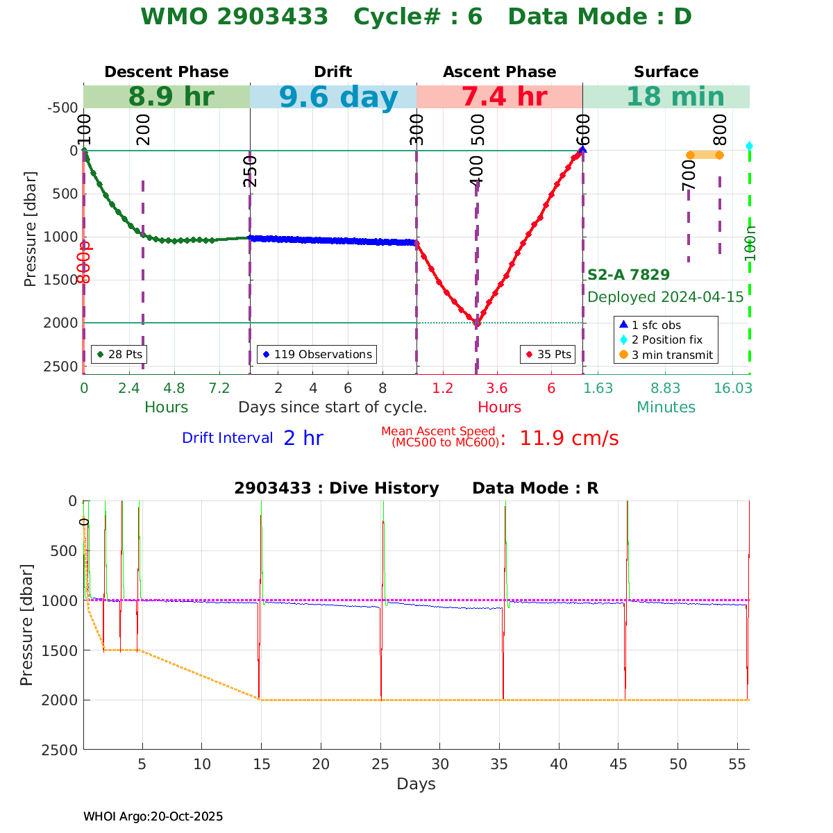 Argo WMO 2903433 : Plots based on NetCDF data files at the GDAC