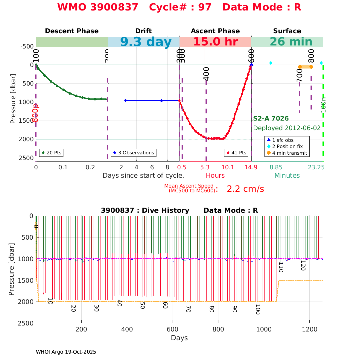Argo WMO 3900837 : Plots based on NetCDF data files at the GDAC