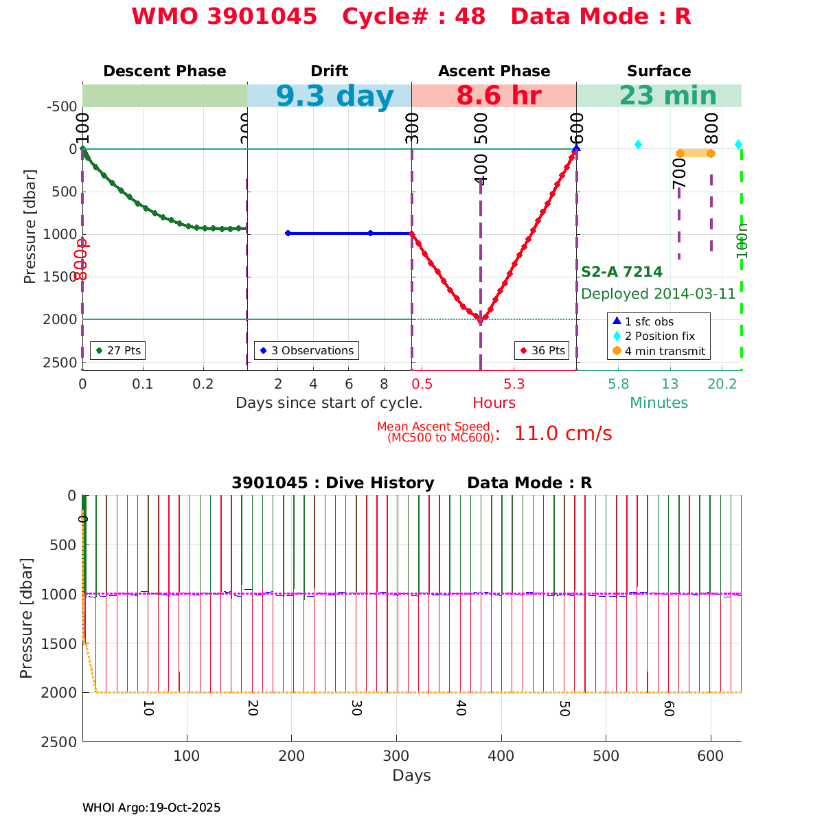 Argo WMO 3901045 : Plots based on NetCDF data files at the GDAC