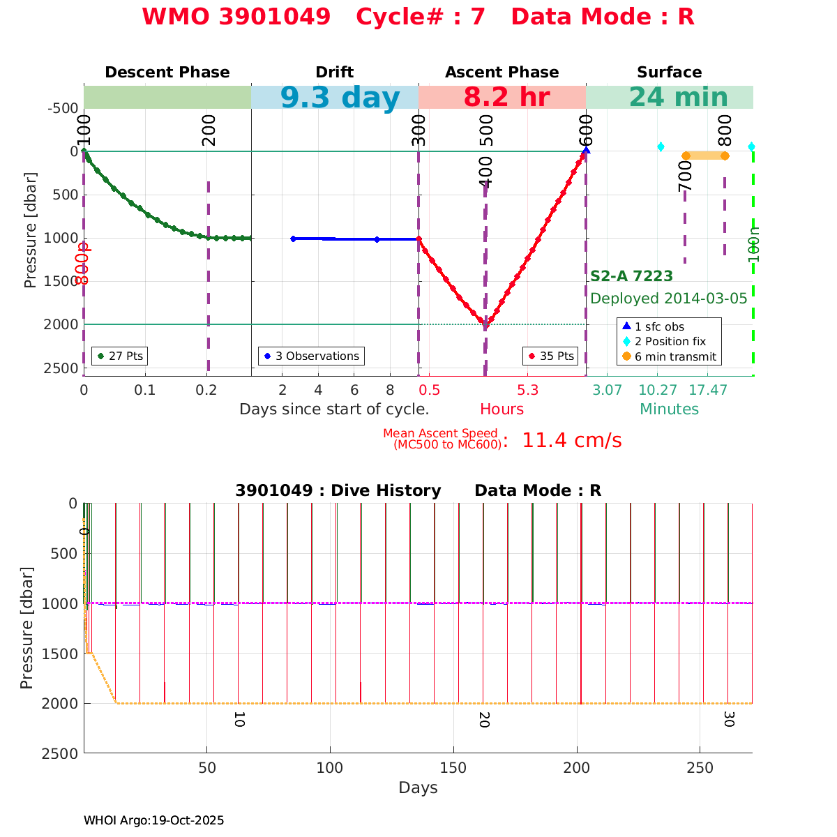 Argo WMO 3901049 : Plots based on NetCDF data files at the GDAC