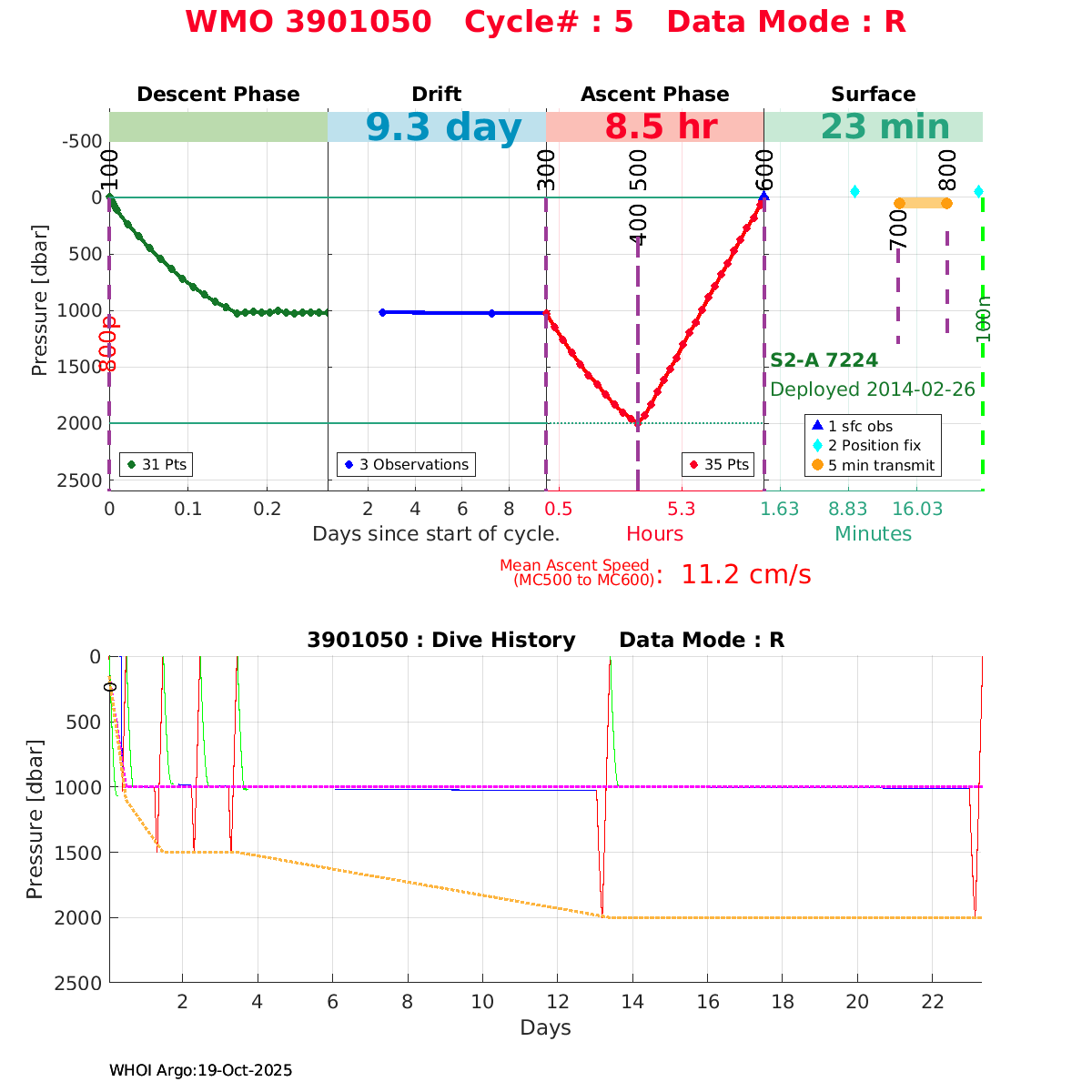 Argo WMO 3901050 : Plots based on NetCDF data files at the GDAC