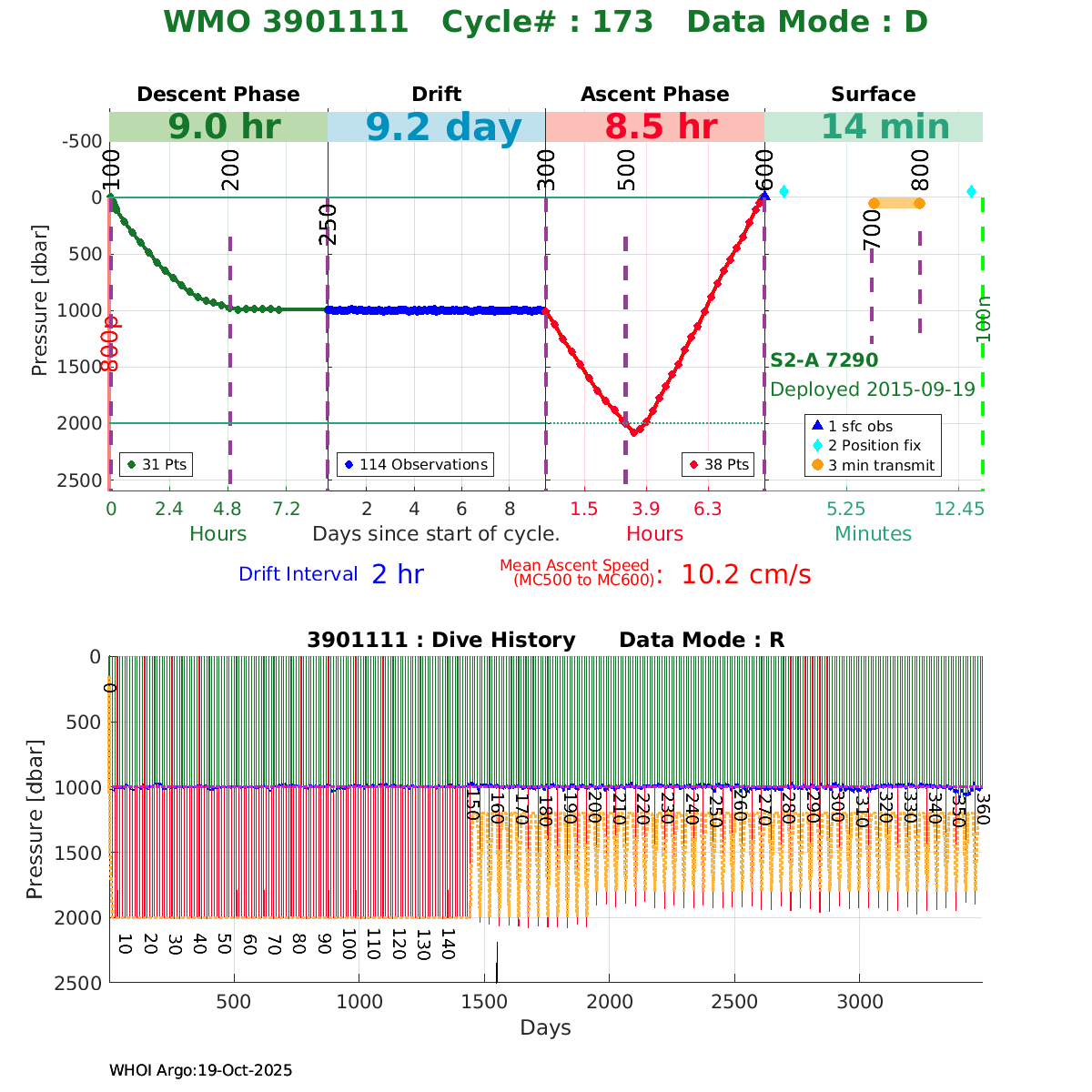 Argo WMO 3901111 : Plots based on NetCDF data files at the GDAC