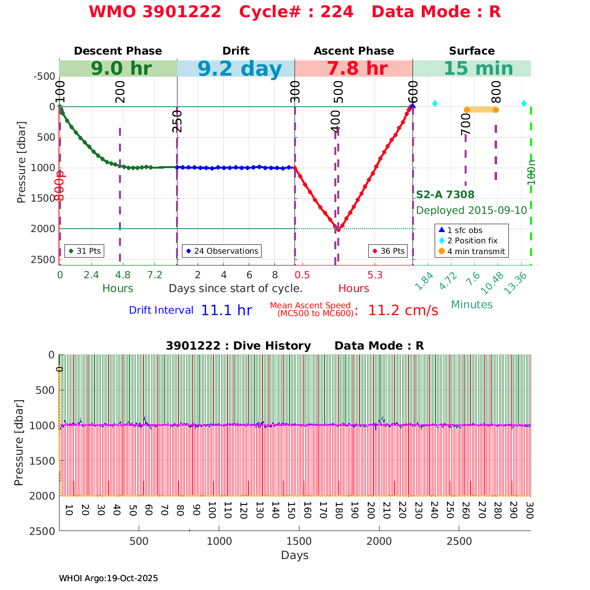 Argo WMO 3901222 : Plots based on NetCDF data files at the GDAC