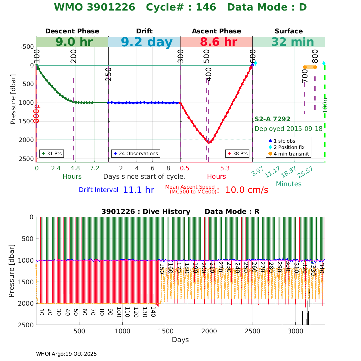 Argo WMO 3901226 : Plots based on NetCDF data files at the GDAC