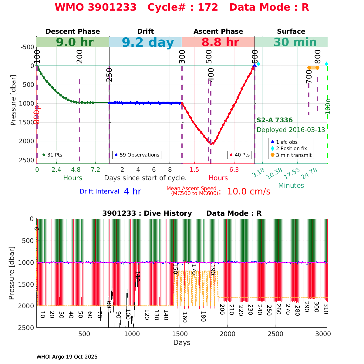 Argo WMO 3901233 : Plots based on NetCDF data files at the GDAC