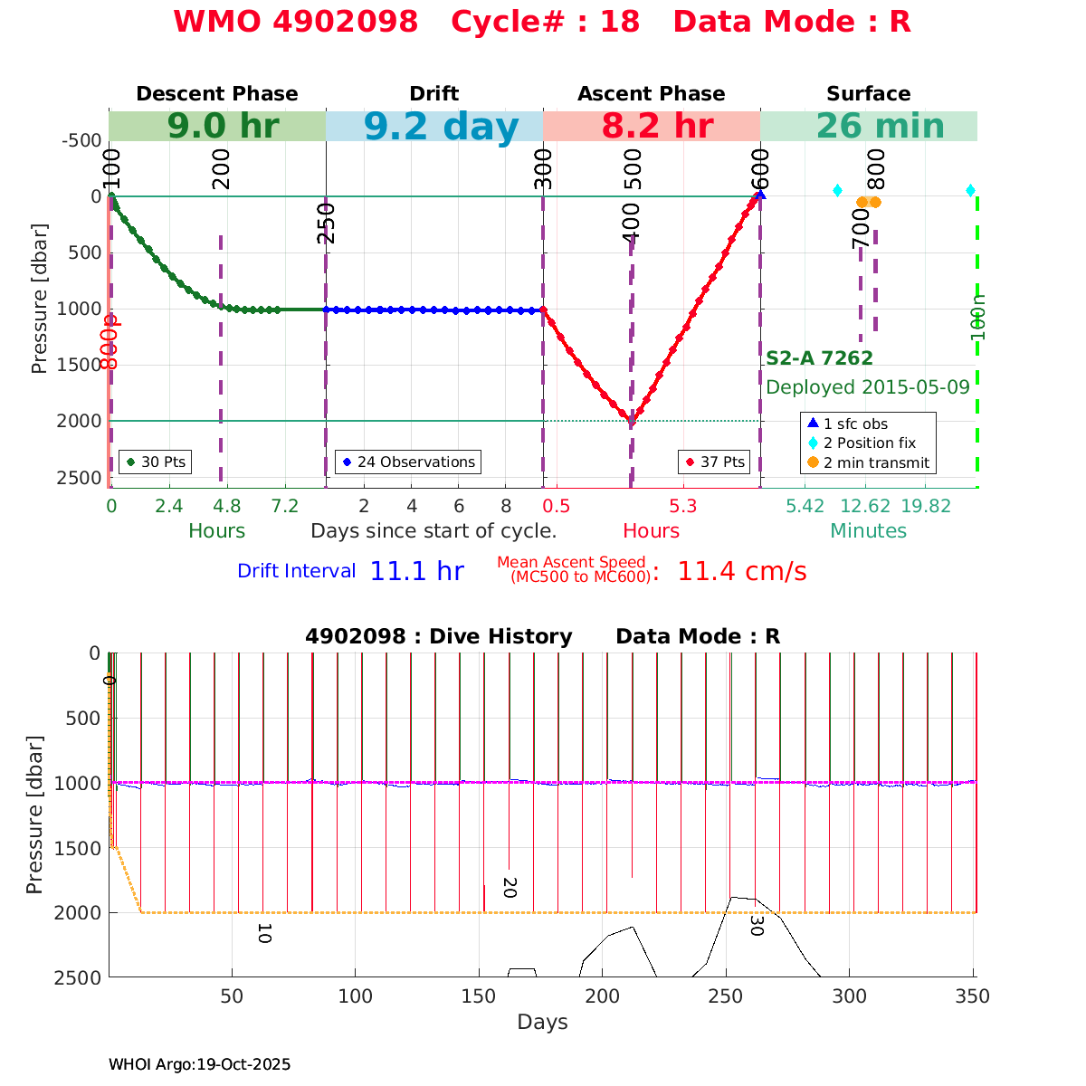 Argo WMO 4902098 : Plots based on NetCDF data files at the GDAC