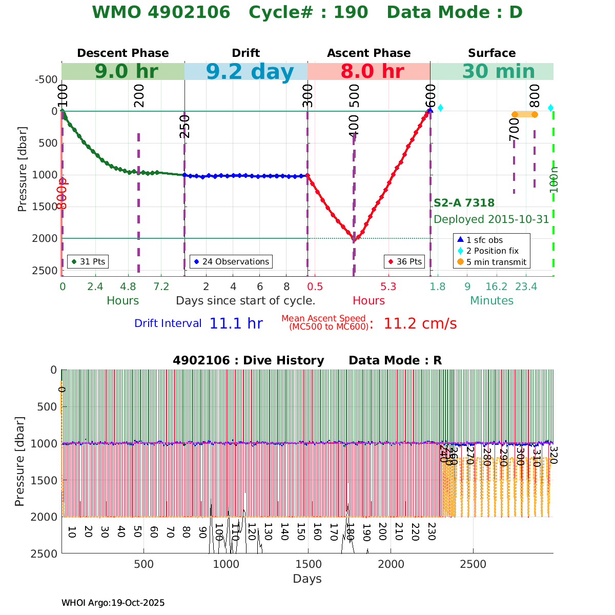 Argo WMO 4902106 : Plots based on NetCDF data files at the GDAC