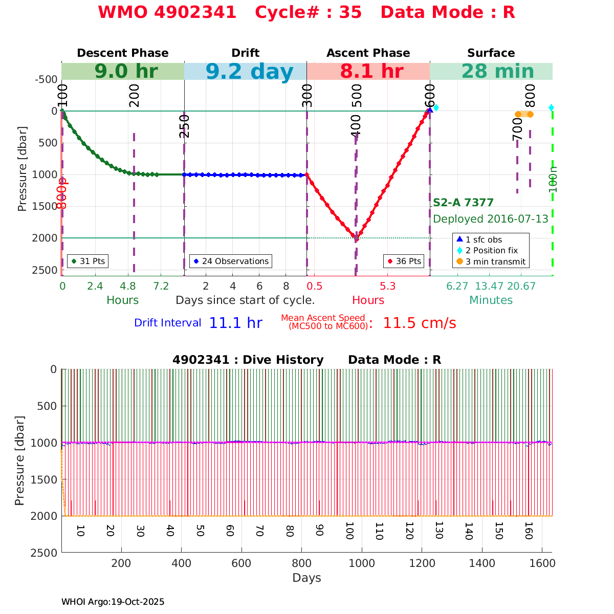 Argo WMO 4902341 : Plots based on NetCDF data files at the GDAC
