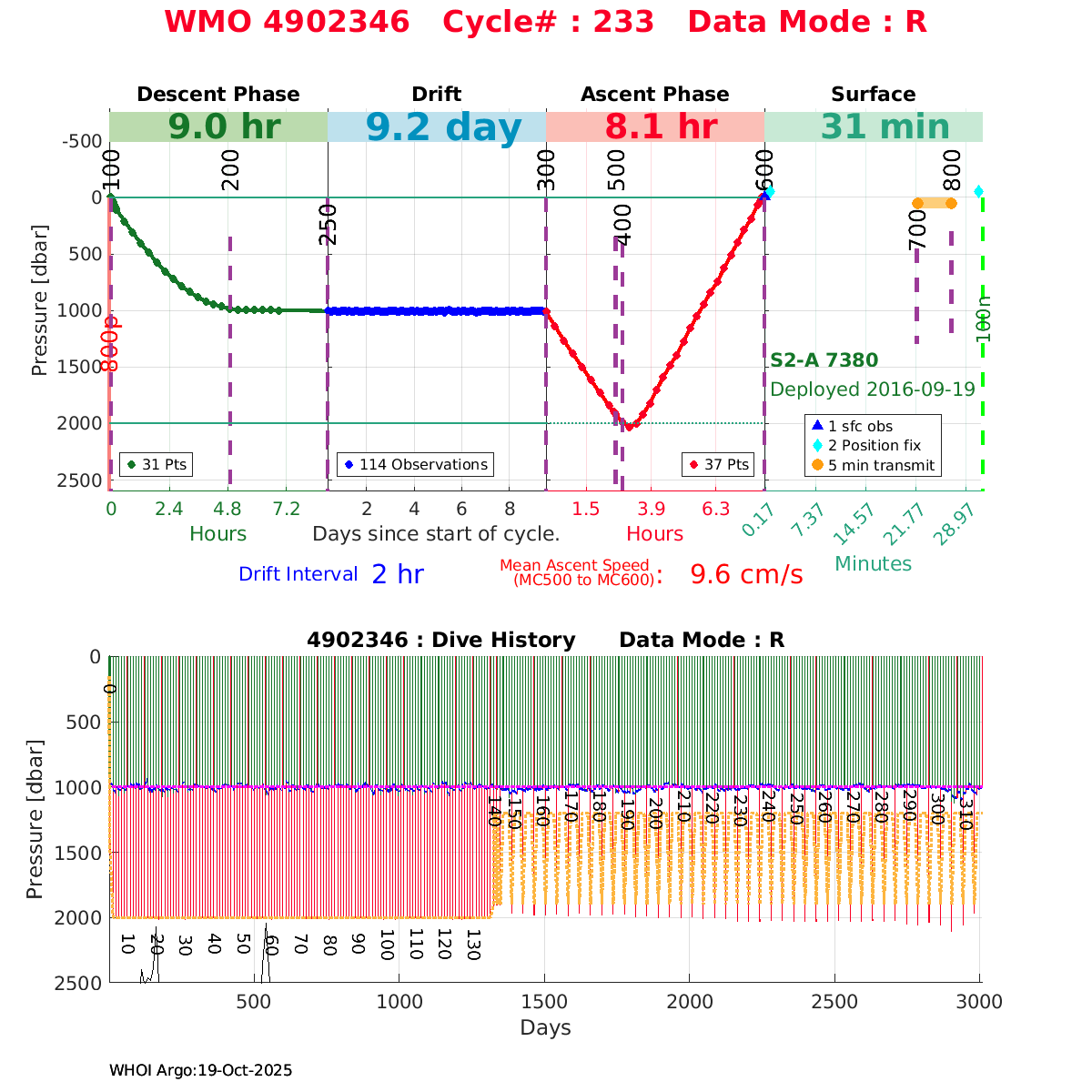 Argo WMO 4902346 : Plots based on NetCDF data files at the GDAC