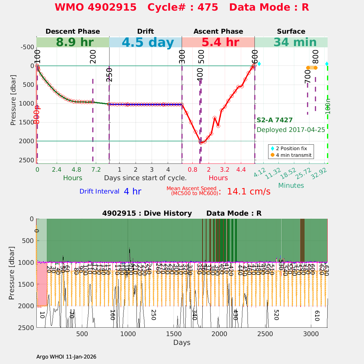 Argo WMO 4902915 : Plots based on NetCDF data files at the GDAC