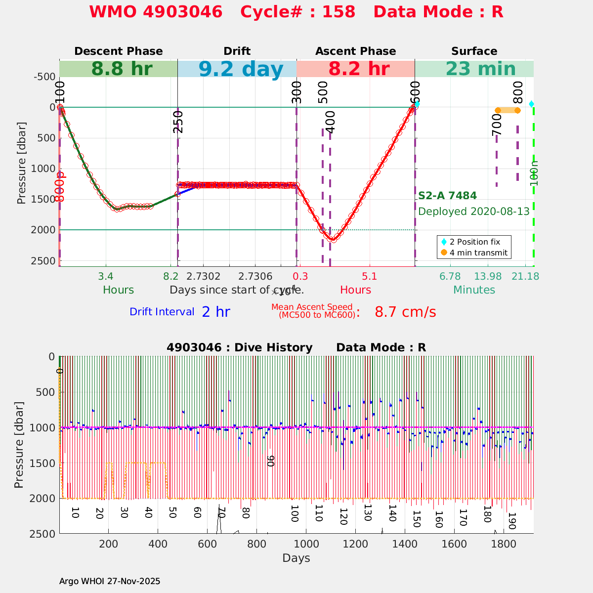 Argo WMO 4903046 : Plots based on NetCDF data files at the GDAC