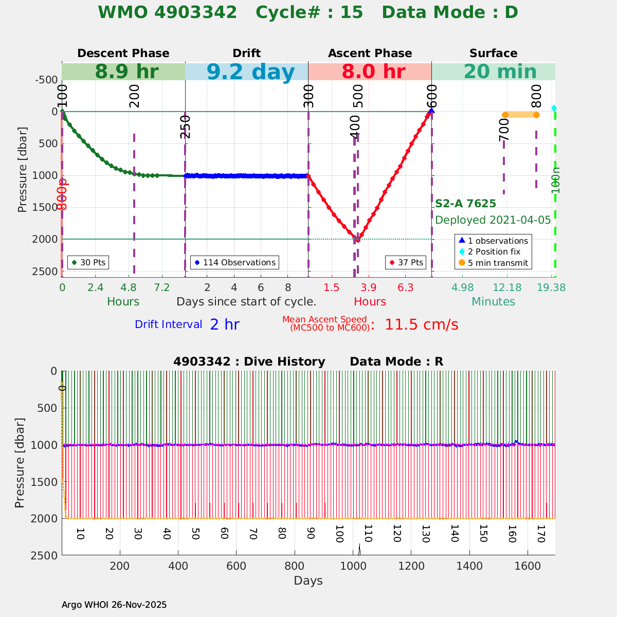Argo WMO 4903342 : Plots based on NetCDF data files at the GDAC