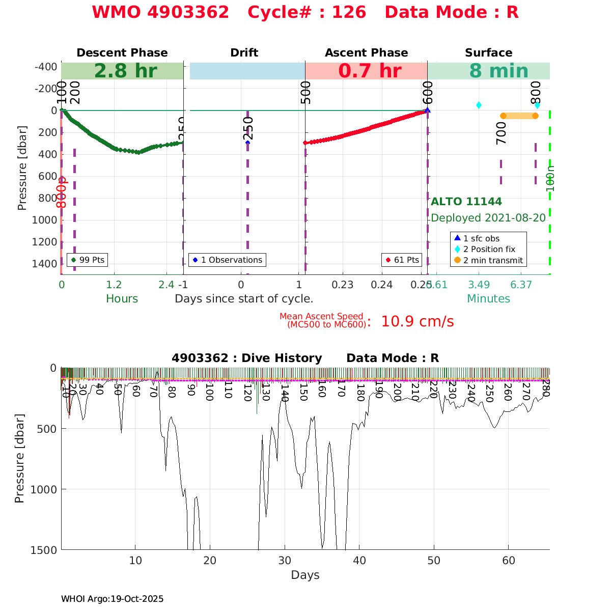 Argo WMO 4903362 : Plots based on NetCDF data files at the GDAC