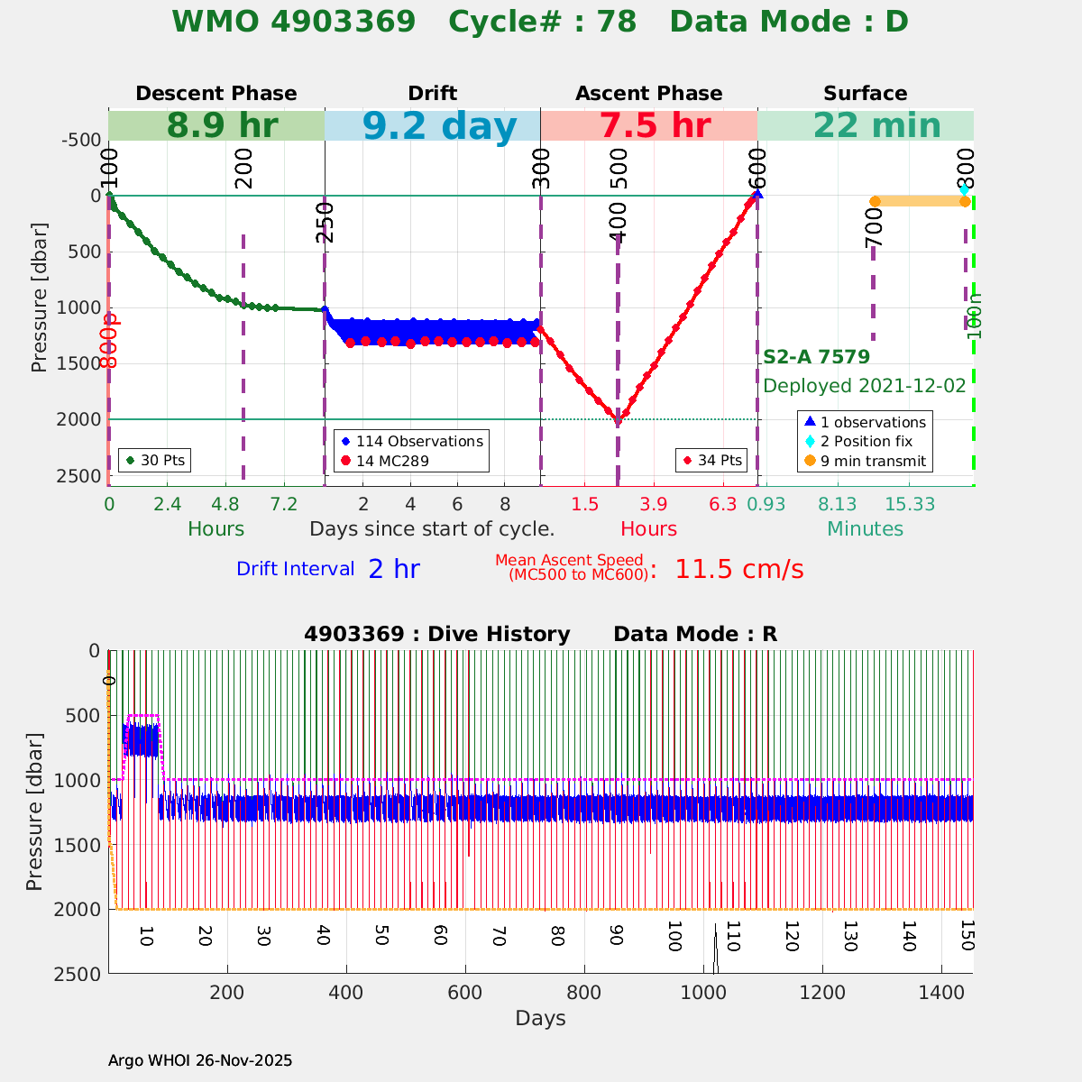 Argo WMO 4903369 : Plots based on NetCDF data files at the GDAC