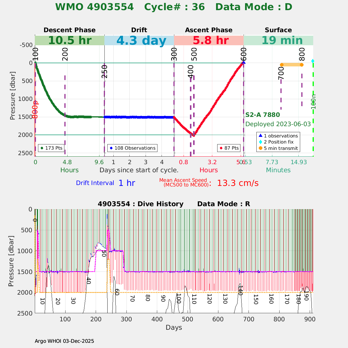 Argo WMO 4903554 : Plots based on NetCDF data files at the GDAC