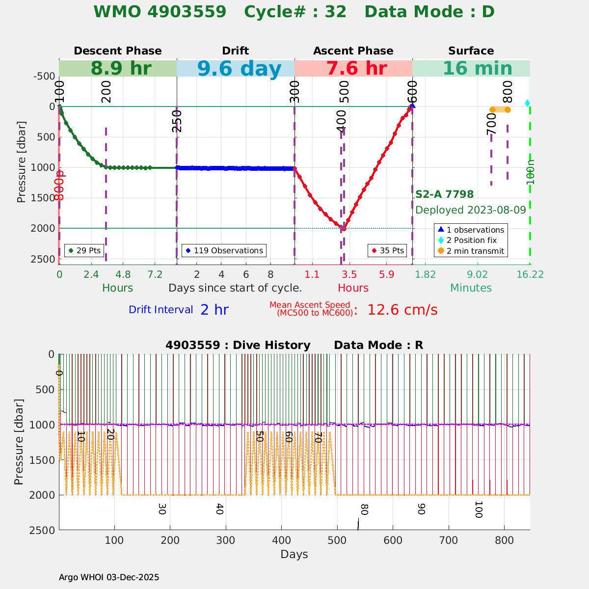 Argo WMO 4903559 : Plots based on NetCDF data files at the GDAC