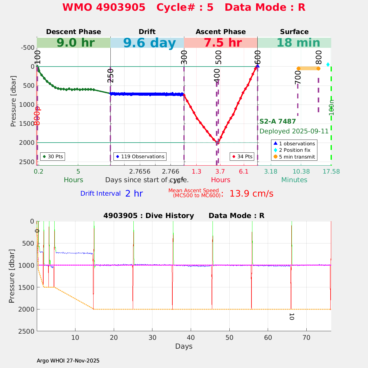 Argo WMO 4903905 : Plots based on NetCDF data files at the GDAC