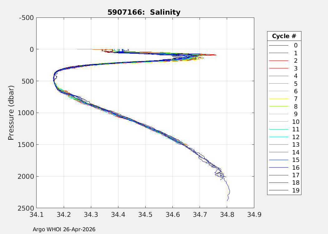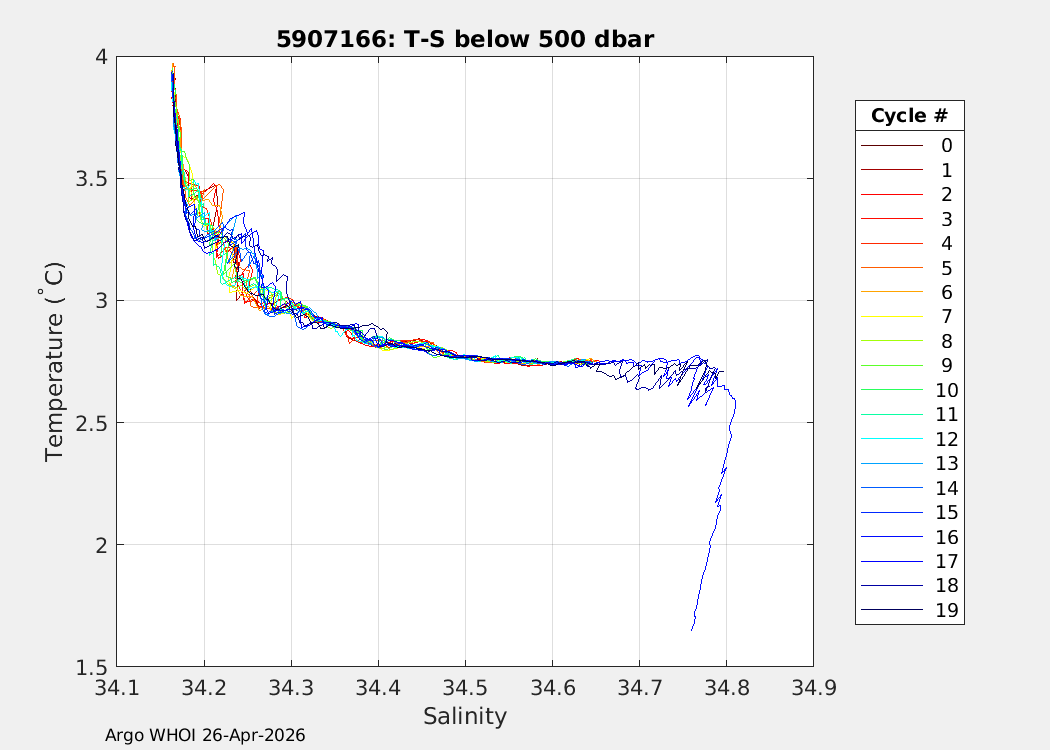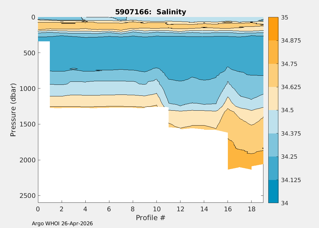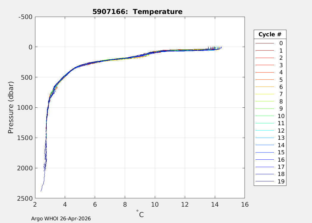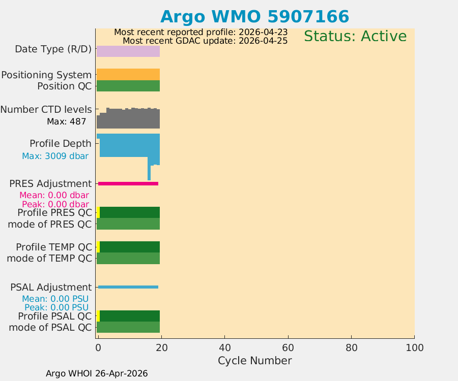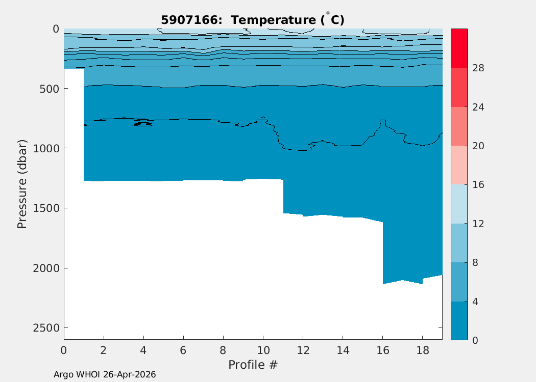 Argo WMO 5907166 : Plots based on NetCDF data files at the GDAC