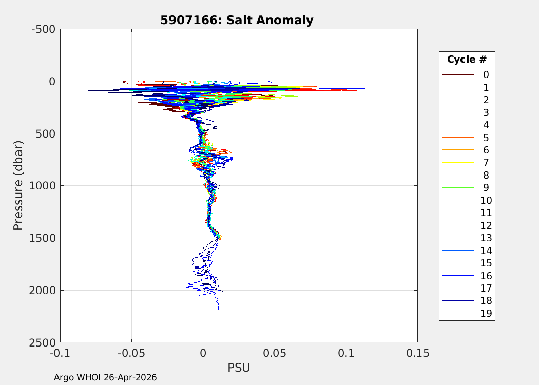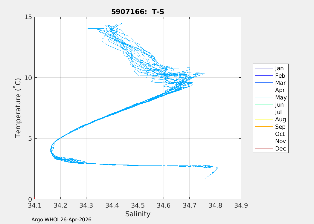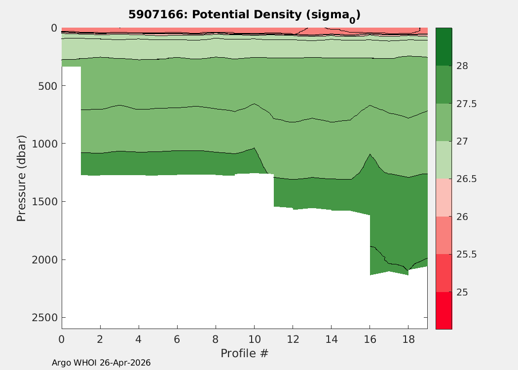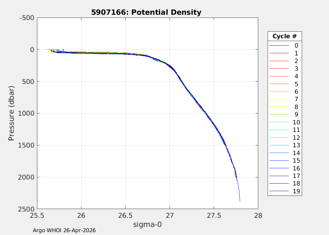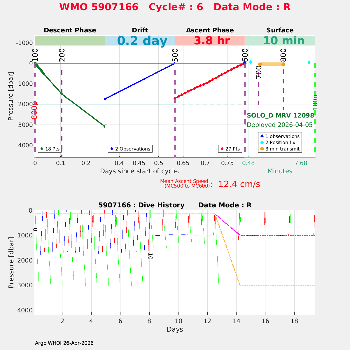 Argo WMO 5907166 : Plots based on NetCDF data files at the GDAC